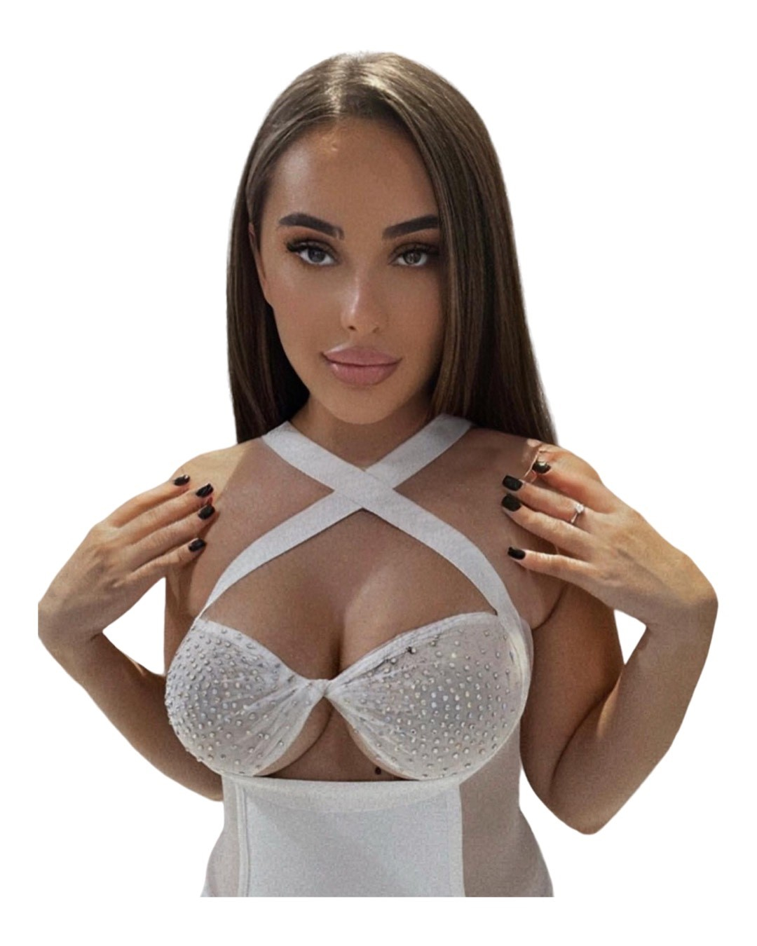 O rochie sexy alba cu detalii senzuale si provocatoare,ideala pentru diferite ocazii.Alege rochia Katrina si experimenteaza un stil diferit ce iti pune corpul in valoare si iti ofera stralucire datorita accesoriilor cu strasuri stralucitoare.
